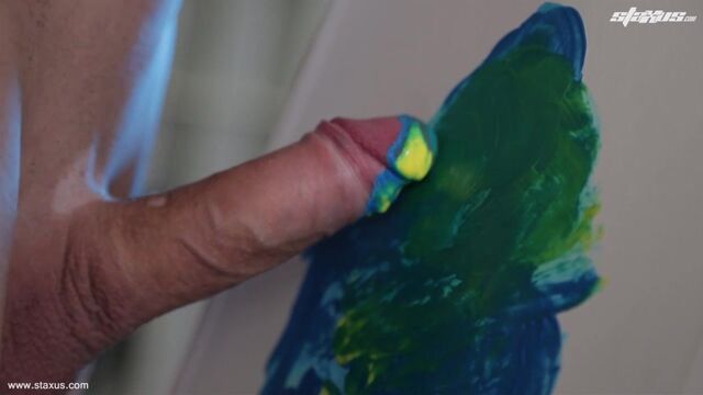 We’ve all heard about people who can use either their mouth or feet to paint, but young Drew Paskin has a talent that very few folk can boast – and one that is most unlikely to appear on any upcoming TV show for artistic wannabes. For here’s a fellow who can actually paint with his dick; though whether the portrait of Kris Wallace that he creates in the opening moments of this scene is ever going to achieve critical acclaim is another matter entirely.Not that any painting – be it created by a guy’s cock or otherwise – is ever likely to capture the true beauty of a fellow of Wallace’s stunning quality. Indeed, Paskin abandons his unorthodox artistic creation in favour of a more traditional appraisal of his pal’s absolutely gorgeous physique, falling down onto his knees and slurping on Wallace’s knob with understandable relish and gusto. An enthusiasm that Polish-boy, Wallace, displays with equal measure just a few moments later!Cue a deliriously hot flip-flop fuck between these lads, which will surely have you jerking like crazy long before the parting shots, and which includes some of the hottest, most animalistic rimming of someone’s ass you’re ever likely to see. Wallace’s tongue is a wonder to behold; as is his dick, which eventually spurts majestically all over Paskin’s face! In short, get ready to milk your balls dry!