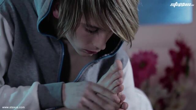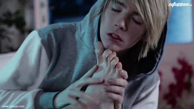 Chances are that we shall never know what young cutie, Tim Law, is looking at on his console, but whatever it is it clearly doesn’t match the delights that Tim Walker can offer when he enters the room. With his long blond hair and his obvious penchant for toe-worship, Walker knocks anything that an electrical gadget can offer right out of the water!The poor console never stands a feckin’ chance – especially when blondie decides to fuck his dick between Law’s feet. Talk about red rag to a bull – and a bull on heat at that! Suffice it to say that the temperature in that room notches up considerably at this point, as the two cock-lovin’ buddies engage in a sultry session of cock-suckin’, cock-rubbin’ action that’ll seriously blow your mind – not to mention more sensitive quarters!All reaching a climax when Walker finally thrusts his thick, aching ramrod deep inside Law’s hungry raw pucker – the horny little bottom’s legs pushed right back so that he’s almost bent double. A succession of positions ensues, but the pleasure that both these lads are experiencing literally oozes from the screen; and it comes as no surprise when they each take turns to erupt big-style, with a sticky, cum-laden kiss between them both serving as an unforgettable sign-off.