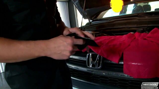 If you thought finding a good mechanic was hard, you haven't seen Johnny Torque! Adam Ridge has hired Johnny to fix his car, and the work is just about done. It's a good thing for Adam, because he needs to get to a job interview appointment right away. Johnny is happy to accept Adam's payment and send him on his way. There's just one problem...Johnny doesn't accept credit cards.Adam has NO cash and NO way of getting to an ATM machine. If he doesn't get on the road toward the interview in the next half hour, he'll blow his chances! So he's gonna have to blow something else. Despite Adam's adamant protesting, Johnny wants to accept another kind of payment, the kind where Adam sucks Johnny's raging, grease-monkey boner. Sometimes you gotta do what you gotta do, so Adam is taking his swollen cock deep. Watch him slurp on Johnny's rock hard erection with delight. Then see Johnny have a taste for himself, as he goes down to get a mouthful of Adam's dick. You won't believe how far Adam is going to pay for quality service as he settles himself down onto Johnny's eager, pulsating cock for a good, hard pounding. Auto shop was never this hot!Enjoy!