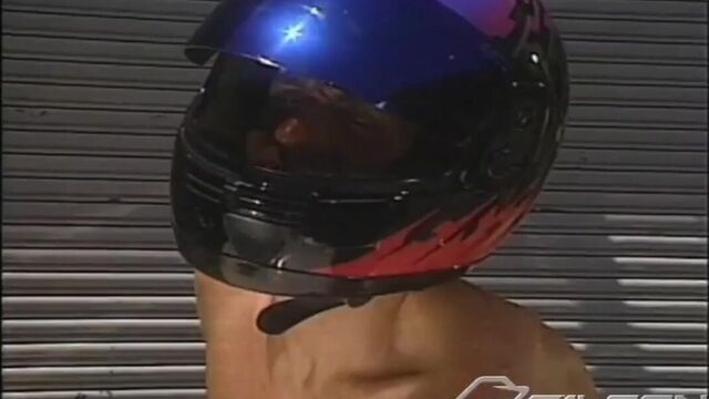 Motorcyclist Bryce Colby, still in his helmet, bends over the hood of a car waiting for musclebound Trent Reed to service and open his ass. Trent shooves four fingers deep into Bryce's butt. Eager to stretch Bryce wider, Trent shoves a thick black dildo all the way in over and over again. Still unsatisfied with Bryce's workout, Trent grabs a traffic cone and Bryce sits down on it repeatedly...stretching his ass nice and wide for the final fisting to come.