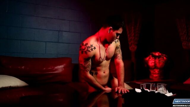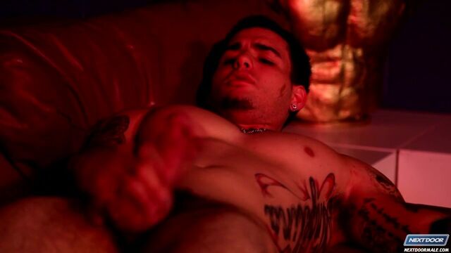 Trevor Wright is an intense sort of guy with interests that run the gamut. An ex-high school football player and volunteer fire fighter, this is one model who shows he's not afraid to get a little dirty in order to get the job done. Here we catch up with him for a candid look into his private life, and then our cameras stick around to eavesdrop on a very up close and personal session underneath the red lights. Dark, sultry and eager to please, Trevor teases you with his cock as he spreads his legs on the leather sofa. Working himself up into a frenzy, he whacks his dick against a table and tries to hold out as long as he can, but the excitement gets to him, and so before too long he lays himself out on the sofa and explodes his load all over his quivering stomach, rubbing the cum into his skin as the red light flickers above.Enjoy!