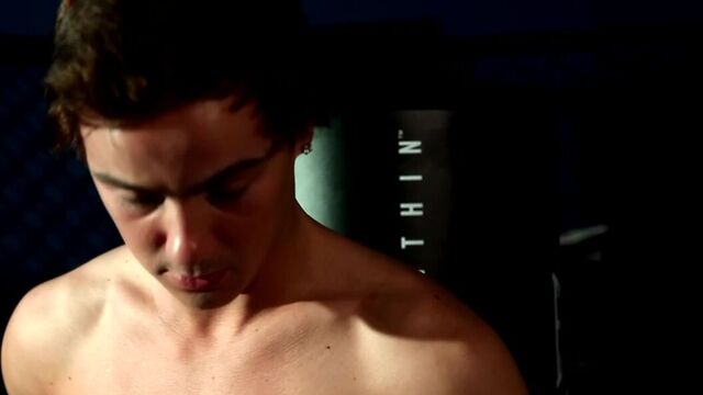 Justin Owen is a California cutie, easy going and easy on the eyes. He's working the bag inside the gym, and then working out a little extra energy down on the mat. Tearing open his velcro fly, he drops his shorts to his ankles and then squats down and spreads his legs, stroking his cock and playing with his balls. His tan skin glistens as he works up a sweat, throwing his head back against the bag and smiling a salacious grin before bending over and rubbing his ass with the side of his palm, shooting his load all over himself and closing his eyes until the next time. Enjoy!