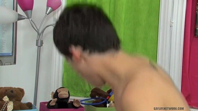 Brendan Tyler & Lucas Sky are out in the parking lot, playing with their RC truck. It breaks down and they go back to Brendan's room to look for parts, when Lucas finds a pair of underwear. He wants Brendan to put them on for him, and he does. Lucas then moves in to kiss him, and the passion takes over immediately. We're treated with some hot kissing, cock sucking, ass banging, and finally sweet cumshots. Enjoy!