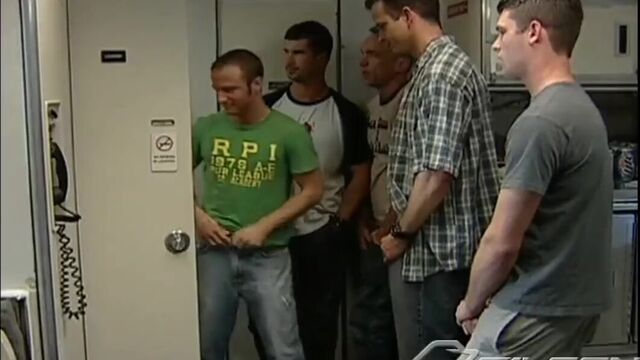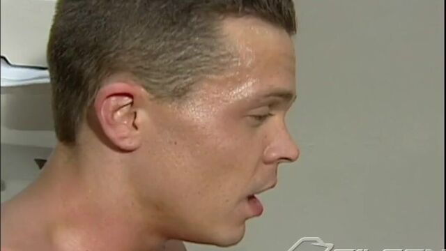 After takeoff, Exclusive Bobby Williams can't control his urge to join the mile high club as he heads into the plane lavatory with sexy newcomer Corbin Michaels. They don't have much room but they take make the most it, sucking and fucking each other with total abandon.