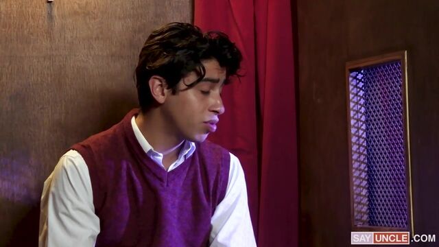 Gabe’s confession wakes up Father Marco’s sexual desire. The young catholic boy can’t stop thinking about men, something that makes the pastor horny as well. The only possible solution is to engage in a moaning-filled fuck session so that Gabe can attone for his sin.