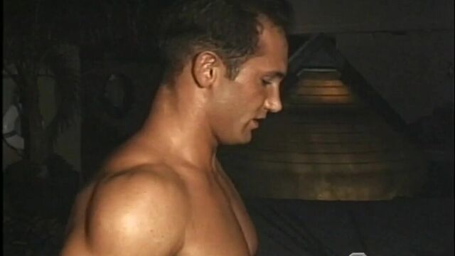 Resort guest Alex Kincaid takes a three-way sex break with hunky employees Tony Idol and Cory Evans. Tony starts off in the middle with dark-haired, dark-eyed stud Alex licking his balls and sucking his cock. Alex soon moves up Tony's muscular body, nibbling on the other man's firm hard nipples. Soon Tony and Cory are sharing Alex's ample dickmeat, deep-tonguing each other's mouths with Alex's glistening cock between them. Alex grabs both their heads and slides their spit-slicked lips slowly up and down his hard throbbing cock. The torrid threesome continues as the trio take turns eating ass, sucking cock and fingering tight puckered holes. Tony and Alex take turns getting fucked by Cory's huge cock, all the while sucking each other's stiff pricks. Finally, Tony squats on the concrete bench to take the huge 'Long Dong' Sean Davis dildo up his ass. Cory and Alex sit on either side of him, watching wide-eyed as Tony takes every last inch of the huge dildo. As Tony's asslips stretch wide to accommodate the six-inch-around monster, Cory and Alex shoot their loads.