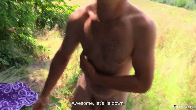 Attractive amateur guy riding hard cock in the bushes - Czech Hunter