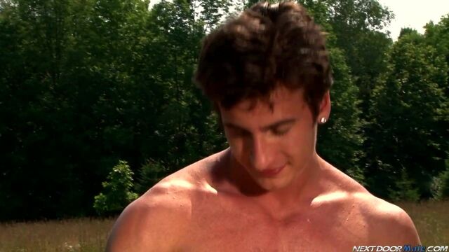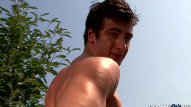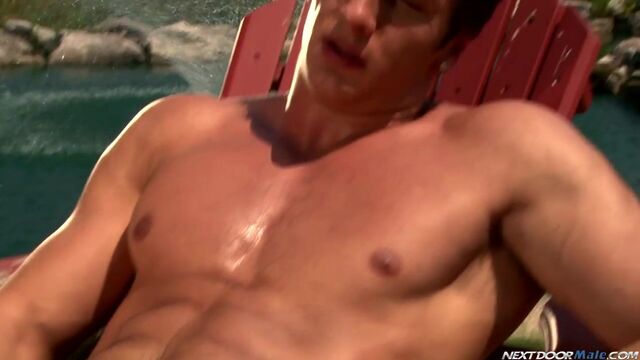 Mario Torrez is an Italian hunk of meat with a Canadian flair for the dramatic. Slowly undressing by a pond on a sunny afternoon, he cuts a picturesque figure amidst all the natural beauty. Reaching inside his pants he pulls out his cock and starts to work it as it glistens in the sunlight. Reclining in a lounger, he rubs himself down and begins to sun himself as he continues to stroke away. And as the midday sun waxes and wanes into late afternoon, he spreads his legs and jacks with intent, reaching for the prize and tugging for pleasure, as his cock stands straight up and swells before letting forth with fountain of jizz that spills onto Mario's rippling chest, which he smears into his skin as it shimmers in the dusk.Enjoy!