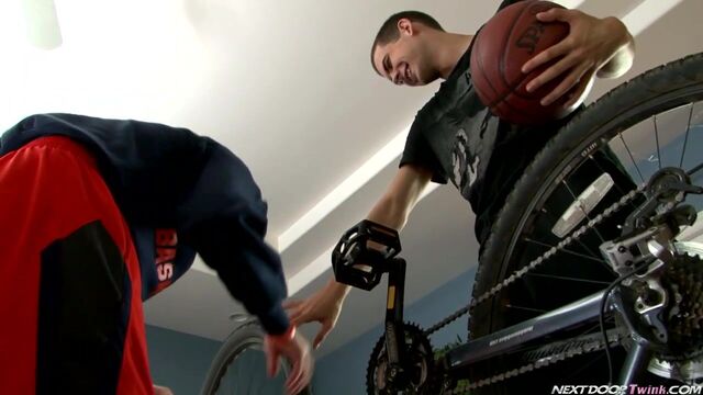 Fresh from playing a game of pick up hoops, Joey Hard and Blake Savage are back the pad hanging out as Joey tries to fix his bike. While Joey's frustration builds, Blake's temptation grows, watching Joey bend over to mess with a tire. Joey catches him spying, and Blake gives him the look, so Joey stops what he's doing and considers letting Blake tinker with his gears. Blake grabs his cock through his shorts and in no time has his shorts pulled down and Joey's cock in his mouth. Joey runs his fingers through Blake's hair and shoves his head further down the shaft of his dick, before dropping to his knees and returning the favor. Next the two guys move over the sofa where Blake works Joey's cock into a swelling rock cutter, at which point, Blake turns over and Joey slips inside of Blake. Blake emits a grunting noise as Joey pounds away with the afternoon sunlight peeking through the curtains. As Joey pumps at it, Blake strokes his dick to the bursting point, shooting his hot load as Joey pulls out and blasts him simultaneously with a sticky mess of man goo. Enjoy!