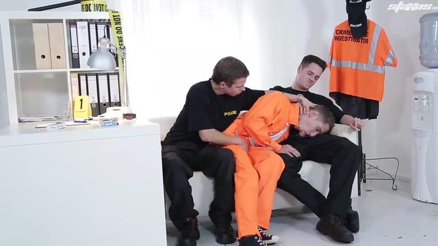 We’re never precisely told what young Kevin Ateah’s alleged crime is – other than being a friggin’ filthy bastard, of course! – but we very much doubt that any of you horny fuckers out there will care. Whatever the exact nature of his misdemeanours, however, he sure as hell catches the attention of police officers Neo Matthews and Joye Dorantez, who are soon making the cutesome twink give head on their two aching cocks.To his credit, Ateah responds to their assertions with characteristic enthusiasm; and as a result it’s not long before Dorantez is pushing his thick truncheon deep into the boy’s man-cunt. It’s a move that seems only to send Ateah into an even hornier frenzy than before; and it comes as absolutely no surprise at all when the action turns duplicate and the fellow has two cocks pounding his ass at the same time.The way he rides those dicks simultaneous really does has to be seen to be believed, and it’s only fitting that the two tops spray fabulous wads of hot jizz all over the lad’s lithe frame at the scene’s conclusion. All in all, a truly terrific, cum-inducing escapade – a performance that’ll have you flicking the rewind button time and time again!