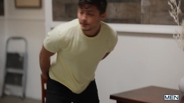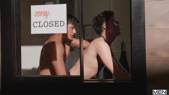 New barista Troye Dean is trying to figure out how the POS works when he spots hottie Angel Rivera sitting in the drive through with his dick in his hand. Angel just wants a large black coffee, but Troye tells him with a wink to cum inside, because it might take a while! The cafe employee is thirsty for Angel's cock, and the top bends Troye over the counter to tongue his hole, then pound him doggystyle. Troye rides Angel until a honk summons him to the drive-through window, and he spills a coffee on a customer as Angel fucks him from behind! Troye shoots his load as he rides Angel on the counter, then takes the top's cream on his face.