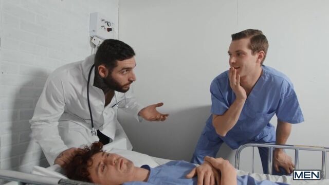 Nothing makes you feel better than good dick, and at this hospital, there's lots of sexual healing going on. First, Clark Delgaty finds a glory hole while cleaning up, and starts a naughty workplace romp with nurse Benjamin Blue! The pair sneakily fuck under a patient's nose while Dr. Tony D'Angelo spies on them through the hole. Tony's not alone for long, as horny bottom Dane Jaxon wants a thorough prostate exam. He gets it, plus a hot dick injection and a big load in his hole!