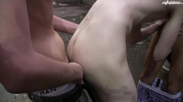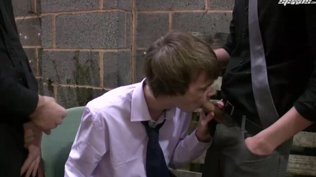The world of international espionage can sometimes seem mysterious and even a little bit sexy, but there’s no denying the fact that it can also be extremely dangerous – as young Kai Alexander discovers when he’s confronted by two secret agents in search of top-level information. Guys who will stop at nothing to get what they want, which in this instance means bundling Alexander into a rather grubby little alley and subjecting him to a very personal “investigation”.As it happens, mind, the two assailants – Kyle Dickson and Sean Davoy – are not the kind of lads you’d particularly object to taking an interrogation from. Davoy, in particular, is a well-toned, dark-haired lad with a nice looking cock. As such it’s quite understandable that Alexander adopts the passive role, taking every hard inch that his assailants can thrust in his direction.The sight of him being brutally spit-roasted is an unarguable highlight; but it’s the overall sense of sordidness that really gives the action a keenly felt buzz. Needless to say it’s not at all long before both Dickson and Savoy are taking turns to whitewash the bottom’s pale torso with jizz; leaving Alexander to crudely toss himself off.