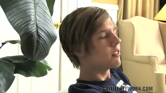 Super hot twink Kaiden Ertelle is sitting on a couch, touching himself slowly while watching one of his private sex tapes. He jerks off for a while, but doesn't realize his friend Atlanta Grey is just outside his window, spying on him! Atlanta comes his and says he can do it better than the other guy in the video... so Kaiden says "Prove it!". Lots of dick sucking, ass licking and ass fucking ensues!