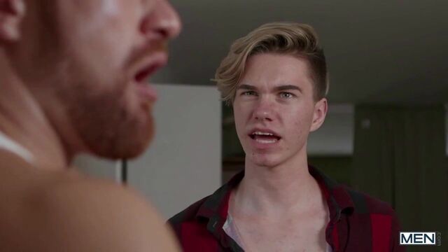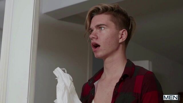 Theo Brady is balls deep in Olivier Robert's ass when suddenly they hear Olivier's boyfriend get home! Annoyed that Olivier tells him to sneak out the window instead of finally being honest, Theo pretends to be a food delivery guy with a bag full of dick, telling Olivier to finish what he started! The horny bottom finally kicks his now-ex to the curb and takes Theo back to the bedroom to celebrate by sucking him and taking that dick doggystyle. The top drills Olivier in piledriver and fucks the cum out of him in missionary, then gives him a facial.