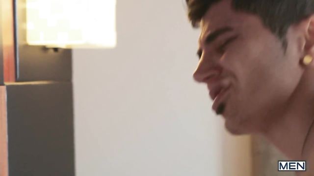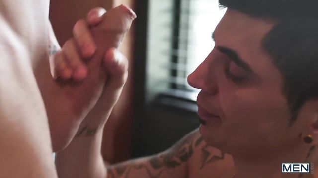 San William and William Seed sit across from each other, slowly stroking their cocks, tempting each other to come closer. William gives in, bringing his huge uncut cock over to the hungry San's soft lips. San gives William a long, deep blowjob, gagging on