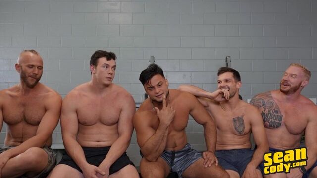 - Description: What could be better than some of the hottest Sean Cody newbies paired with a few of our hottest veterans for a five-man orgy? Brysen, Blake, Clark, Axel, and Eddie chill by the pool in their matching Sean Cody swimsuits, horsing around in the water and flashing glimpses of their cocks for the camera. But the orgy action really begins in the gym, with Clark and Blake getting their pump on together until Blake fucks the curly-haired hunk. They're joined by Axel, who helps Blake spit-roast the bottom, and then Brysen joins the party. Once Eddie arrives, he gets Clark to himself as Axel, Brysen and Blake form a train, and these guys' powerful thrusts give the gym equipment a major workout! Clark bends over on a block and takes four big loads on his muscle ass, then lies back and jacks it till he cums.