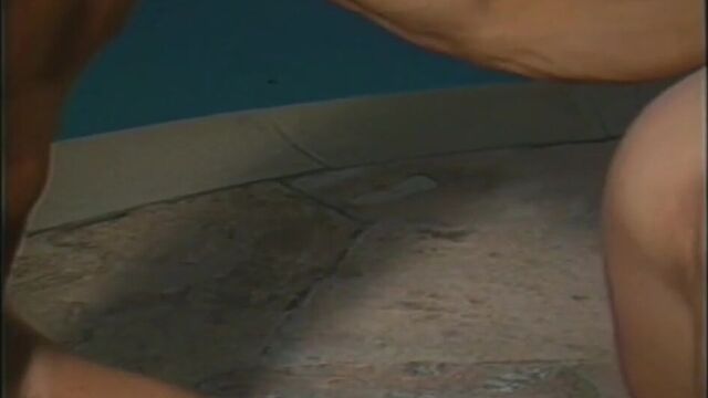 Kurt Marshall, Jim Bentley, and Brian Maxon. 'Come on by and catch some sun around the pool,' suggests Jim Bentley over the phone to Brian Maxon. Muscle stud Maxon arrives with smooth pal Kurt Marshall and in no time the young men have shed their suits and are eagerly engaged in poolside play. Jim and Brian work Kurt over from head to tail, probing every crevice and stretching his hole with both their rock hard cocks until each young stud is fully sated and soaked in erotic release.