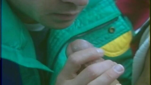 Ski instructor Johnny Hanson heads up the slopes in a ski car lift, and soon finds his juicy cock getting slurped by handsome Jeff Michaels. A hot wad gets planted on Michaels' face in this oral appetizer.