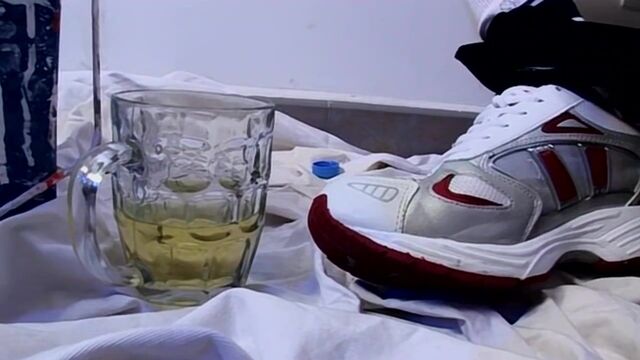 Angel Cuenca is a very kinky Euro stud who has many fetishes. He loves smoking while he pisses and jerks off and while doing some reno work he couldn't find a bathroom. He found a beer stein to piss in, giving us a great view of it. Angel also gets off on the smell of his stinky sneakers, shoving them right into his face while he strokes his big, European dick!