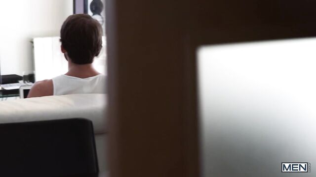 Max Adonis and his hubby are getting romantic when Max hears a noise and insists on investigating. They find Ricky Blue dripping wet. The next day, their mysterious houseguest overhears Max on the phone telling someone he'd like to take Ricky's cock, and Ricky uses his muscular body to distract Max from his work and keep him away from his phone... so he can't hear about the escaped madman on the loose. Ricky definitely goes wild as he fucks Max's mouth and eats his ass, then bends the bottom over the kitchen island to breed his hole. Can anyone who makes Max cum this hard really be bad?