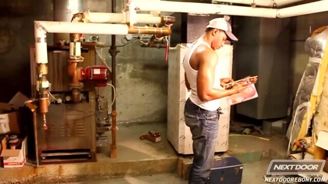 Tyrell is a hard working, back-bone-of-America kind of guy. He puts in long hours at the plant, making sure there's food on the table at his house. But when the quittin' whistle blows, Tyrell's mind starts to thinking about sex...rough, dirty, nasty, sex. That's why he has a hidden porno magazine underneath a some heating equipment in the boiler room. After work he usually throws a quick beat before heading over to hop on the evening train home. But today his dick's just been too stiff. He's decided to pop one off at lunchtime. Watch him lock the door and drop his jeans to reveal a behemoth cock that needs a good stroking. Join him while he enjoys some much needed relaxation time. His incredibly hot, chiseled body lifts steel and moves heavy stuff all day and this meat tugging is a nice cool down. Shoot off some steam with this blue-collar hunk!
