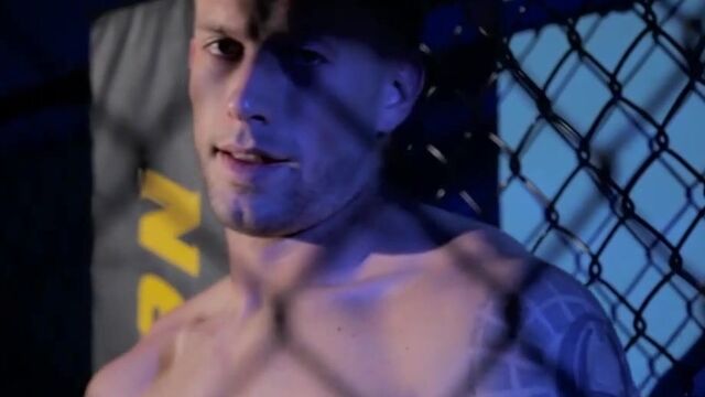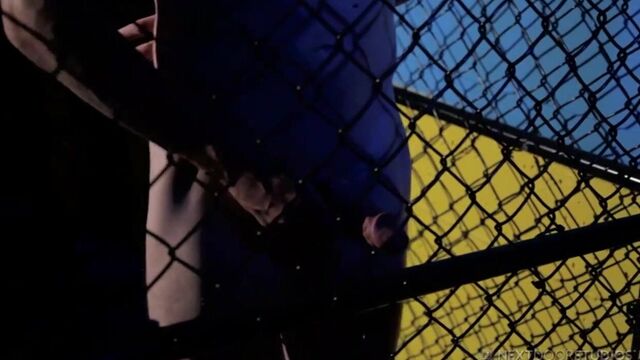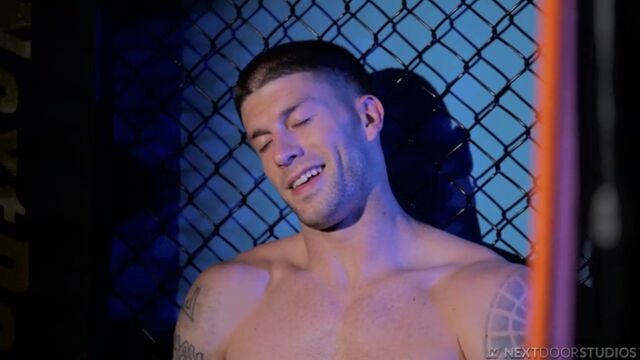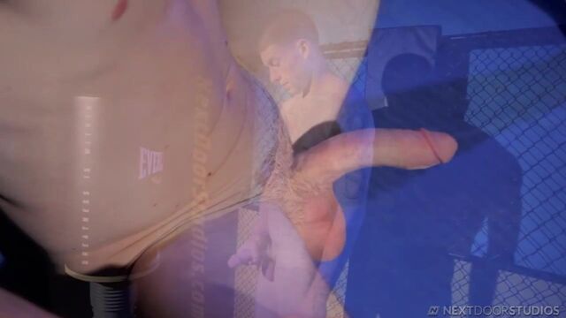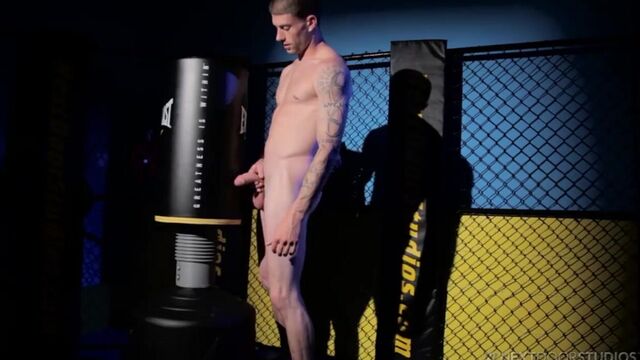 Brec Boyd is all alone in the gym, long after closing. Finished with his workout, he lingers in the shadows of the empty room, leaning against the cage and fondling his cock beneath his shorts. Opening his fly, he unfurls his hardening cock and takes off his gloves to get a better grip. Smacking it against his palm, he threads it through a hole in the chain link fence, slowly massaging it into peak performance mode. He sits down against the punching bag and spreads his legs to get a better feel, then without shame or restraint, he proceeds to stroke it to his heart's content. Bending over and fingering his taint, he strokes even faster, standing now to unleash the full contents of his load, which he does in a splash and blast that ends up all over the mat. Enjoy!