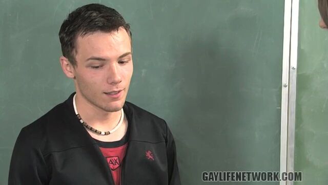 Spencer London goes to his teacher's class after school to get his measurements taken. Only the teacher, Ethan Storm, is puzzled as to why Spencer came in naked under his see-through gown. One thing leads to another and pretty soon the gown is off and the twink is hard! He gets sucked for a bit and then fucked hard and deep by Ethan the horny teacher. Don't miss this!