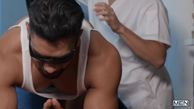 Maverick Sun is thrilled to get to work on a butt as great as Ihan Rodriguez's when the hairy bottom shows up for full buttocks laser hair removal. After making that ass perfectly smooth, Maverick lotions it up, then wants to be the first guy to test out that smooth ass. Ihan moans as Maverick rims him, then drills him doggystyle before fucking his face. Ihan rides the top on the table and cums as Maverick pounds him doggystyle before filling that smooth ass with a creampie.