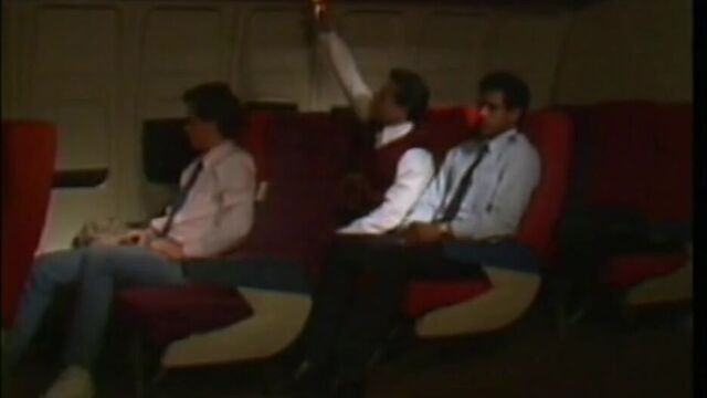 Flight attendant Ron Pearson takes passenger Mark Miller to the rear of plane. He quickly drops to his knees and begins slurping up Mark's dick. Ron takes Mark back to his seat and finishes sucking him off there.