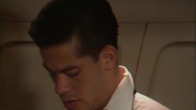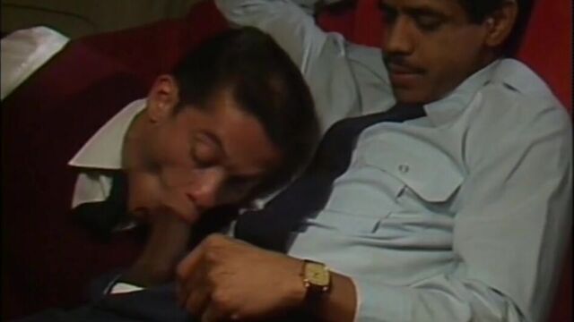 O.G. Johnson has returned to his seat but flight attendant Melchor is there to take as much of that cock in his mouth as he can. Buster is in the next row up and invites them up. So, it has now become a hot three way.