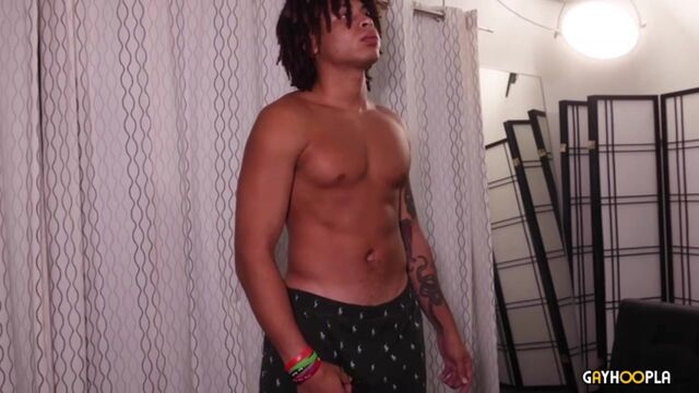 Ebony hunk JJ Smith stroking his juicy boner big time - Gayhoopla