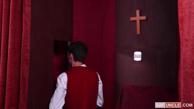 - Description: Mischievous boy Andy sneaks into the confessional room and pretends to be a priest to hear Father Rob’s confession. The churchman recognizes having masturbated while thinking of other men, something that gets Andy stroking his cock while telling him to repent of his sins. Father Rob feels awful about the situation, and Andy serves him the perfect atonement: making him suck his dick in the confessional room. The priest complies, surrendering fully to the temptation of tasting the forbidden fruit. Yet Rob quickly realizes that Andy is pranking him, something that won’t prevent him from fucking Andy’s tight ass until cumming.