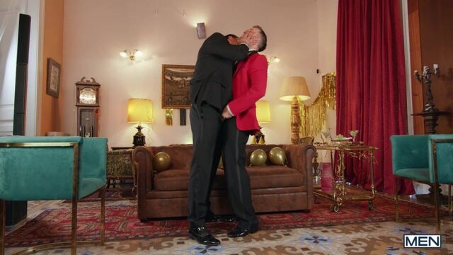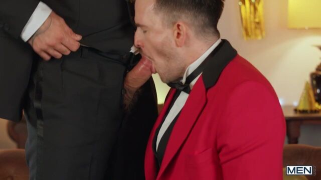 Sophisticated Euro couple Papi Kocic and Franky Fox have a very special New Year's Eve planned. They decorate the house, dress in their fancy tuxedos, and have a toast before Franky can't wait any longer for their first fuck of the year. He swallows the top's cock, and Papi slaps Franky's ass before tonguing it, then fucks the bottom doggystyle as Franky's mouth is filled with a noisemaker. When the clock strikes midnight, the lovers feed each other grapes as Franky rides Papi's dick, and Franky sets off a sparkler before the real fireworks happen as the guys blow their loads!