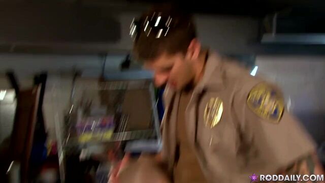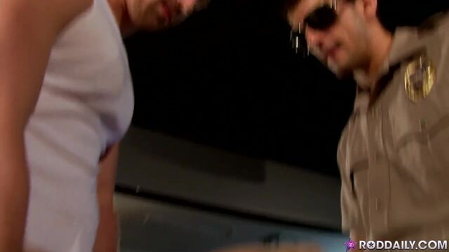 - Description: Rod Daily thought he had committed the perfect crime. Absconding with Andrew Stark's bag, Rod suspects that he's made a clean getaway until Andrew and cop friend Officer Tyler Torro roll up and discover him walking the side of the road. Caught red-handed, Rod is at the mercy of Officer Torro, who is clearly prepared to handle things in a somewhat unorthodox manner. Rather than taking him downtown, Tyler has decided on a little bit of payback- so he shoves Rod into his trunk and transports him back to his private garage. Once there, Tyler lays out the rundown for a confused Rod and Andrew. Rod can either take his punishment here in the garage or he can take his chances downtown. Rod chooses the former, and so Andrew shoves his dick down Rod's throat as Tyler undresses and strokes his cock. Bending Rod over, Andrew first wets his hole with a little ass eating, then plunges his cock deep into Rod's waiting ass as Tyler chokes Rod with his dick. Sucking Tyler off as Andrew pounds him from behind, Rod's own dick is growing rock hard. Moving down to the floor, Rod rides Tyler's night stick as he sucks on Andrew, jacking his dick and spraying a load in the process. The whole sight is too much for Tyler to take, and almost immediately he rips off his condom and explodes as well, which is shortly followed by Andrew showering Rod with his own load. Guess it's just like they say: A couple loads to the face beats some jail time any day. Enjoy!