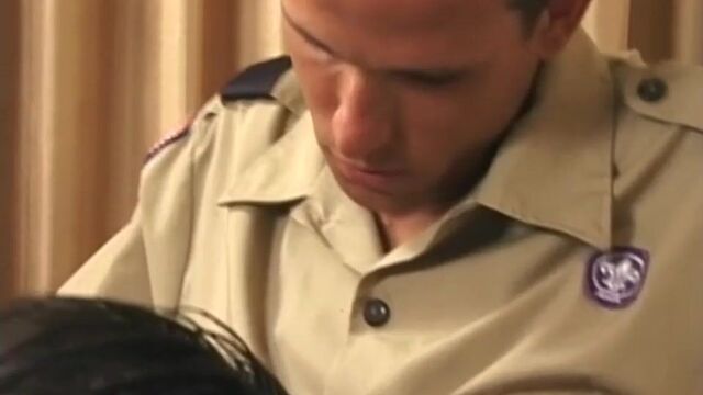 Dex Dexter is a no nonsense security guard who is punishing Boyscout leader Jason Kelly for misbehaving. He pulls on Jason's cock nice and hard and uses his stick to play with Jason's asshole. Jason learns his lesson by blowing Dex before bending over to get a sexy rim job. The ass is good and ready when bossman Dex pushes it in deep and hard. When they're too hot to keep going they finish off by exploding in their hands.