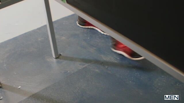 Everyone knows this is the bathroom where hookups happen, and even when he's all alone, Johnny Donovan can still enjoy the naughty graffiti as he jacks off. When Malik Delgaty enters and makes it clear he's DTF, Johnny gets down and sucks his cock under the divider... until Tony D'Angelo comes in! Tony wants some glory-hole action, and Malik watches as Johnny sucks the tattooed stud, then gets fucked doggystyle! Tony switches stalls with Johnny so he can suck Malik and get rimmed, then Malik fucks Tony while the vers hunk swallows Johnny's dick. When Malik gets left out as Tony fucks Johnny, he punches the divider out so he can turn this into a threesome and get his hole tongued before lucky Johnny gets two loads on his face.