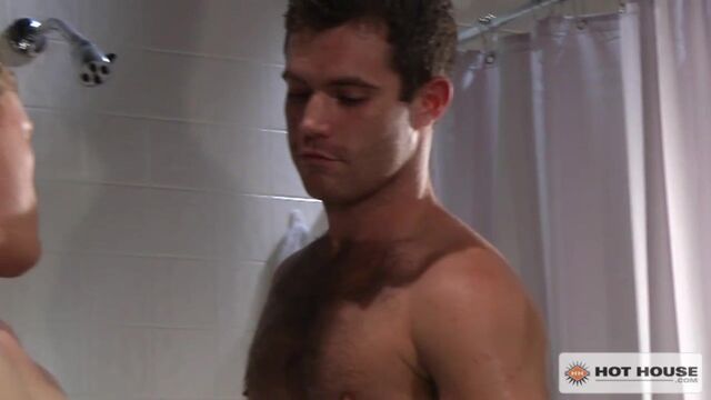 Brandon Bangs comes into the locker room from a good workout and catches Trent Locke rubbing one out in the shower. Using his huge cock as bait, Brandon lures Trent out of the shower and onto his knees where he feasts on Brandon's boner. When Trent offers up his furry round ass the real workout begins; Brandon fucks the sweat and cum right out Tent then shoots his milky load all over the locker room!