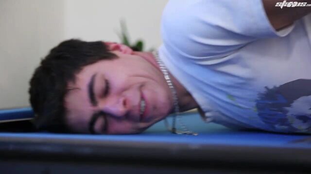 - Description: Sometimes a young guy can find himself in the wrong place at the wrong time, through no obvious fault of his own. As dark-haired cutie, Damian Drake, discovers when he encounters a rather horny and bad tempered Martin Love. Why, before the youngster knows what’s happening, he’s been asked prostrate over a billiard table, had his hands cuffed behind his back and is getting his arse well and truly tormented and tanned by his cropped haired counterpart. In fairness, Love is an unquestionably hot article in dominant mood, but it’s hard not to feel for Drake as he’s asked down onto his knees and has the older fellow’s dick thrust down his throat. What’s more, the boy’s predicament gets little easier as the scene unfolds, as he’s asked to sniff trainers and then has a baton knocked up his ass. But the piece de la resistance comes when Love finally fucks Drake over the games table, then underscores the total humiliation involved by emptying what appears to be the entire contents of his balls all over the young lad’s face. Little wonder that Drake looks totally used and dejected by the scene’s end – but it’s that kick, of course, that marks the magic of it all!