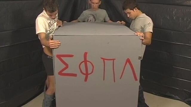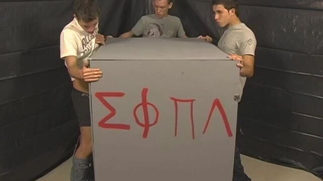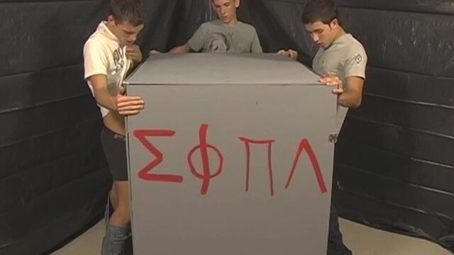 The glory hole box is back! This time frat-twinks Nick Angels, Braden Fox and Jesse Jacobs have trapped an unsuspecting Nevin Scott inside, and as we all know, there's only ONE way out of the glory hole box! Nevin sucks, deep throats and strokes his way to freedom, but not without getting a hot load of cum to the face first!