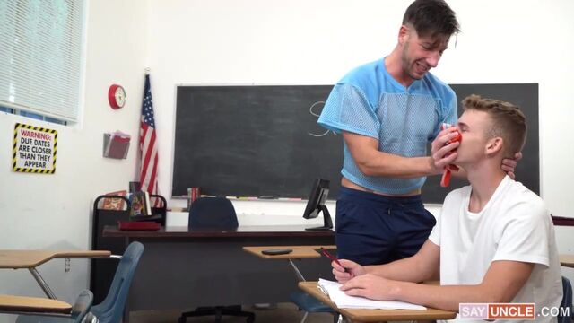 While stuck in study hall with a stinky jock, Jack can’t help but hide from the smell of sweat. Jordan quickly catches on to Jack’s weakness and decides to toughen him up. His ripped and athletic body quickly overpowers Jack, who finally succumbs to all the pleasures of a real man.