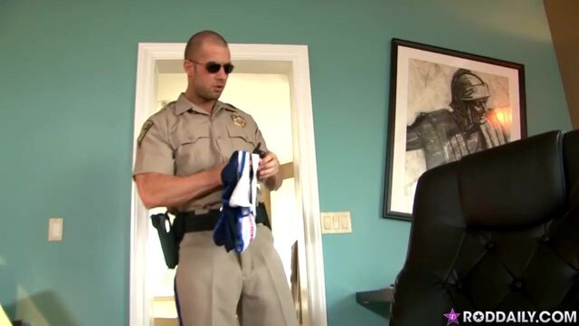 - Description: Rod Daily is a cop who's seen his share of robberies, nappings, and crimes. Today he's been called to the scene of a possible break in. Officer Daily's heard rumors about the goings on up at the big house on the hill. They say wild, strange things happen up there. A neighbor reported seeing an intruder push his way in through a back door. When Officer Daily arrives, the scene is quiet, with nobody in sight. But as he looks closer, signs of entry become evident. The door was clearly kicked open. Chairs were knocked over, and lamps lay discombobulated on the floor. But once piece of evidence has piqued Rod's interest. A pair of freshly worn underwear sat in the middle of the bed. Rod most keen sense is his olfactory. He takes several deep whiffs, filling his lungs with musky odor from the underwear. He sits down in order to be in a more comfortable position to make a determination on where this clue will lead. Rod knows he needs to get inside the perpetrator's head. Pulling his cock out, he lets his imagination run wild. From the smell, whoever wore the undies last has a huge member. Rod knows the essence of girth, something he learned at the academy. He strokes his now raging boner, thinking about how bad he wants to catch his man this time. To simulate this thick dicked mystery assailant, Officer Daily pushes his large, metal flashlight into his ass, enjoying the cold, hard object inside him. He continues to jerk his cock, working himself up to a breakthrough in the investigation. And when this cop shoots a massive load onto his own face and into his mouth, you'll see why the precinct has nominated him for 'Best Field Work' 3 years in a row. Enjoy!