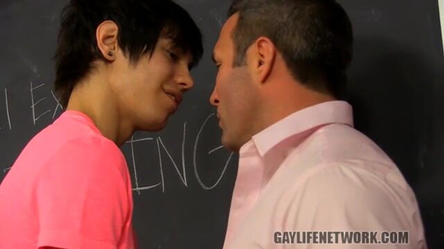 Scott Alexander's out of time on his final exam, but he's prepared to work over his teacher, Brock Landon. The young twink gets down on his knees to service Brock before the buff teacher throws him onto the desks to fuck him on his back. Scott gets fucked over the desks and in Brock's lap, too, before he shoots his load. The horny student finds himself on his knees, taking Brock's load in his mouth to finish things off!