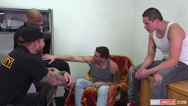 - Description: Security guards Donavan and Jeremiah take Nico and Ty to a private room. They’ve had reports of pickpocketing and these two were always near all of the incidents. Nico and Ty are busted, yet they know how doing whatever the guards say can let them go freely. The hot perps put their excellent cock-sukcing skills to the test by blowing Donovan and Jeremiah. Their asses are on the line too, so they might as well enjoy a good plow and forget the whole thing.