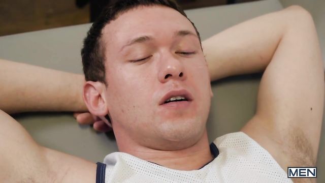 Coach Brandon Evans massages Micky Jr before fucking him - Big Dicks At School