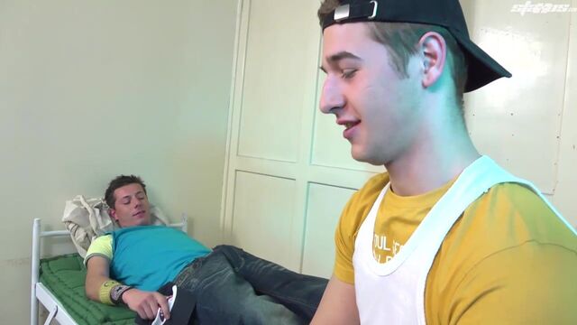 Two foul-mouthed young tearaways find themselves incarcerated by the police – a somewhat claustrophobic set-piece that not surprisingly results in the pair of them discovering how much fun you can have with a hard cock and an open mind (not to mention an open ass!) Nick Gill is the hard man of the show, obliging Mathew Ross to get his cock out so that he can give it the sort of rough sucking that it deserves; but it isn’t long before the fellow’s attention has turned to Ross’ ass-hole, as he rims and licks the hungry little pucker like you wouldn’t believe. Indeed, Ross has the sort of pert bubble-ass that is literally just crying out to be fucked, and it really comes as no great wonder that Gill is soon pounding away at it like a rabbit on heat! Suffice it to say that Ross gets to enjoy every inch of his cell-mate’s bare shaft, culminating in him riding the knob cowboy-style whilst he wanks himself off unmercifully. It’s not long before Gill has dumped the entire contents of his balls into Ross’ crack – leaving Ross to return the favour by spraying his ball-juice all over Gill’s cute face. Fabulous!