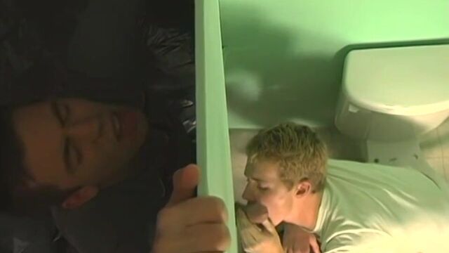 Nevin Scott is having a sneaky jerkoff in a bathroom, when Braden Fox just happens to stumble upon him and hear his jerkoff session. Braden notices a hole in the wall, so naturally he lets Nevin suck his dick! Nevin then notices Jesse Jacobs' dick in the other side of the wall, lubed up ready to fuck him!