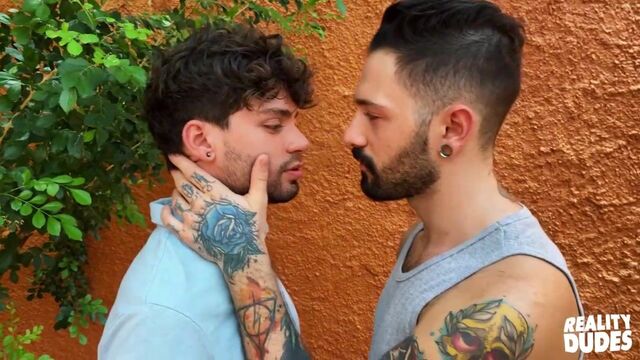 Bearded hunk Igor Lucius is walking down the street when he notices dark-haired stud Joe Davis and approaches him. Instantly enamored, the sexy dudes move to a more secluded area where they take turns stroking and sucking each other’s dicks. Joe has fun riding the top's thick rod, then Igor pounds his juicy hole in doggystyle. The cute bottom jacks off till he cums, and the lovers end this passionate, bareback romp with a kiss.