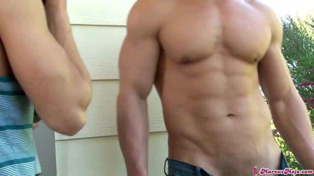 - Description: Marcus Mojo is on set for a photo shoot for what should be a day like any other. Only today, the photographer, Bradley Rose, seems a little distracted once on set. Maybe it's the way Marcus' ripped physique looks in those jeans and cowboy hat, or maybe it's just how this guy likes to work, but for whatever reason, Bradley is clearly taken back by this assignment. Awed at Marcus' abs and massive arms, Bradley can't help but get a little handsy. And as Marcus undresses for the photos, it becomes obvious that Bradley is particularly enamored with the blue eyed model. Finally he just boldly puts Marcus' cock in his mouth and snaps off a few pics. Feeling Marcus swell inside his mouth, Bradley decides to put down the camera and focus on something more pressing. Running his hands up Marcus' chest, he peels off his own clothes and now stands naked before Marcus. No slouch himself, Marcus is impressed with Bradley's body and grabs his firm cock before lowering himself to suck Bradley off. Bradley grows as big as he's ever been, so Marcus leans up against a rail and Bradley enters from behind. Marcus lets how a groan of pleasure at Bradley's cock slides in, and the two of them fuck against the rail before moving to the floor. Bradley kisses Marcus as he pumps him missionary and Marcus jacks off with his legs spread, erupting as Bradley's dick pounds his asshole. The site of this is too much for Bradley to contain, so he pulls out and cums all over Marcus' stomach, as the sun beats down and makes its way westward. Enjoy!