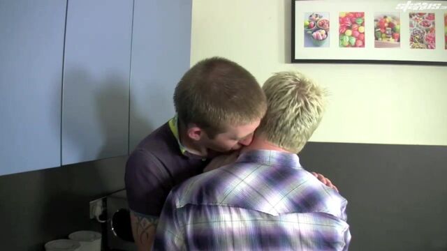 It’s obvious from the start that young Joshua Martin appreciates the pleasures that spending time with an older, more experienced guy can give, as this horny little episode with bottle-blond Joe James proves. If nothing else, James is keen to prove that there’s life in the old dog yet and that the age difference – just over twenty years – really does count for precious little.Certainly there’s a distinct gusto about the older fellow as he goes down on the younger guy to deep-throat the stiff cock that Martin has stuffed in his trousers; and it’s not long before he’s raring to turn his attention to the younger guy’s pucker.As such, Martin soon finds himself manfully pinned against the kitchen worktop, James’s knob bashing away at his man-hole with all the pent-up energy of a guy half his age! The result, not surprisingly, is a rich cascade of jizz, as the two fellows finish their fuck on the kitchen floor. Sex, it seems, is good at any age!